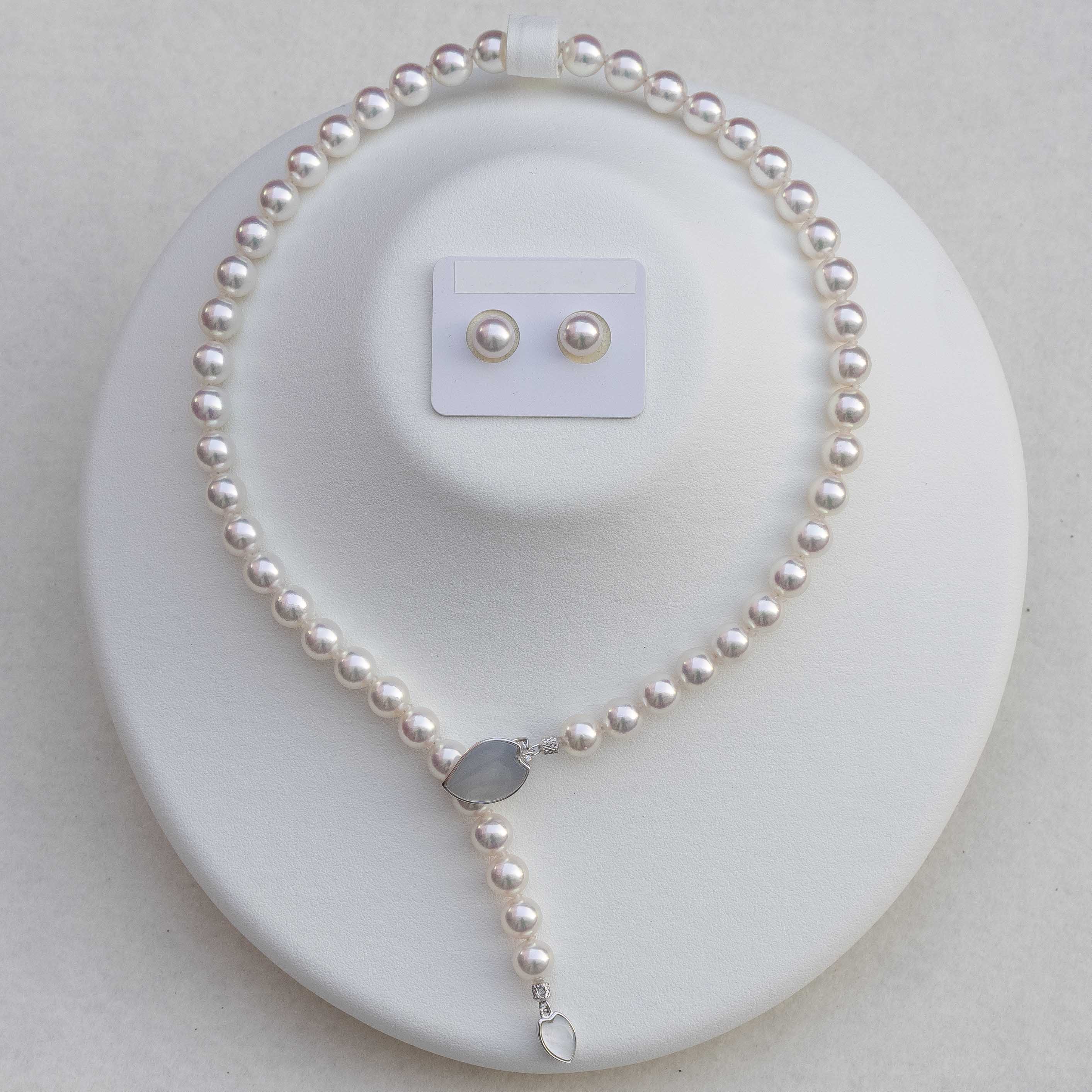 真珠養殖の本場、宇和島の生産者が厳選したテリの美しいネックレス。8.5-8.0mm