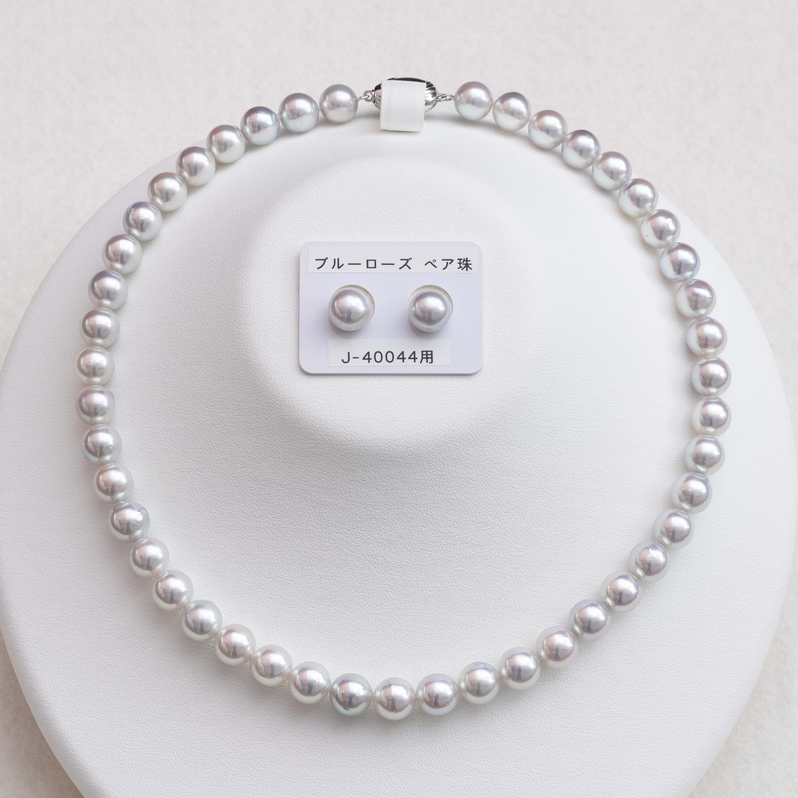 アコヤ貝特有の繊細な輝きが魅力のナチュラルブルー系のネックレス。9.5-9.0mm